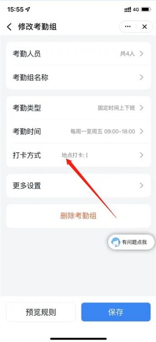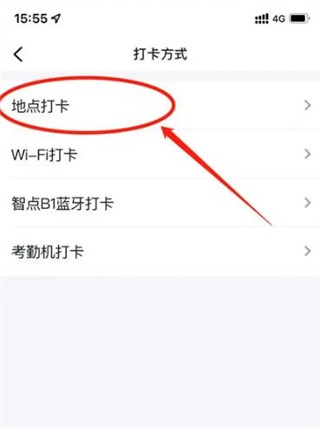 在打卡方式中选择打开当前打卡方式,例如:地点打卡。