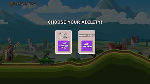 1、首先打开山地坦克大战游戏,进入开局选择技能,不同的技能攻击也不同;