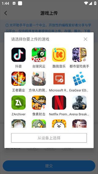 3、请选择你委上传的游戏